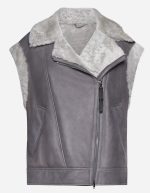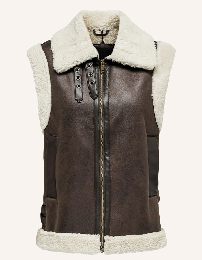 Women Clothing Gilet in leather look with teddy Straight cut Turn-down collar Closed with zip Side pockets Width adjustable tabs on hem