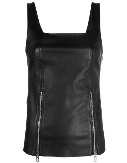 leather vest top leather vest top jet black, lambskin, zip details, square neck, sleeveless and straight hem.