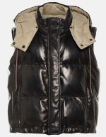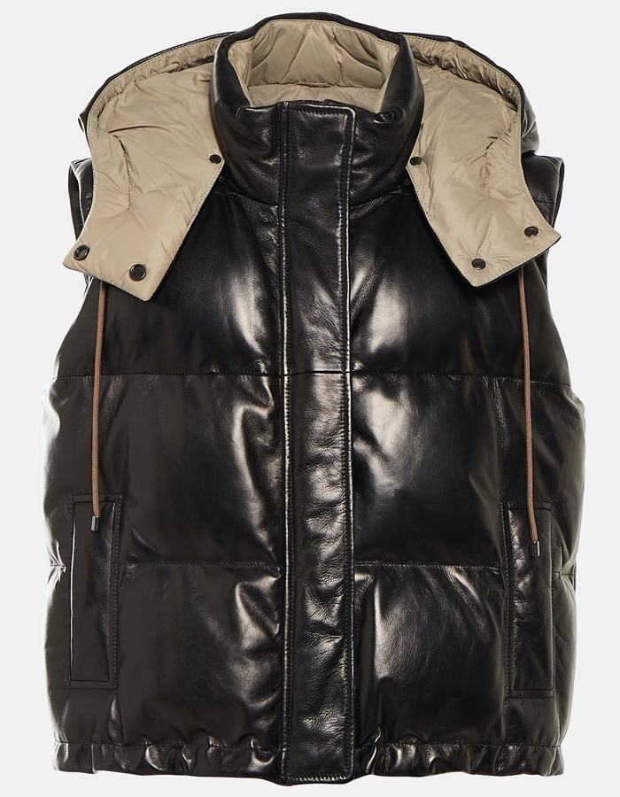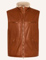 Leather vest Pockets: snap-buttoned pockets, slit pockets Lining: 100% polyamide Material: 100% leather Filling: 90% down, 10% feathers Designer color name: Black